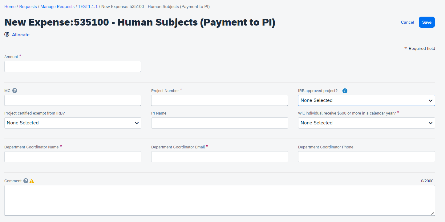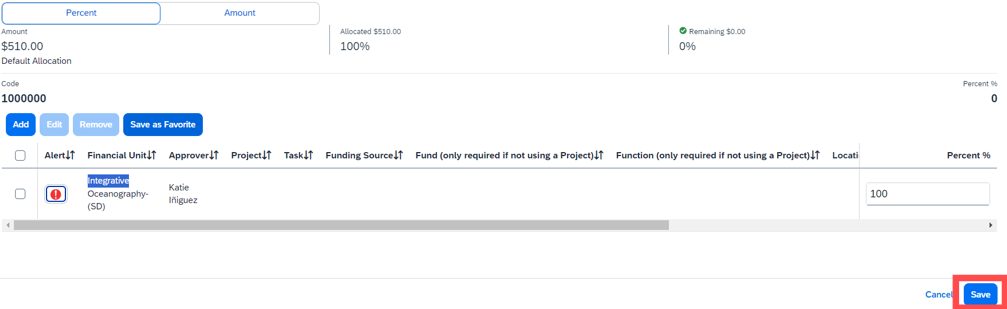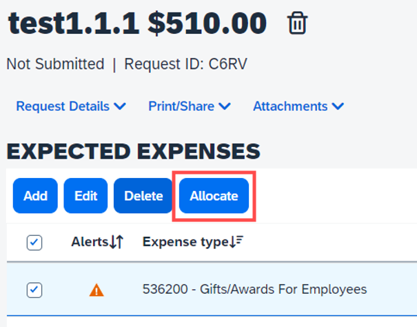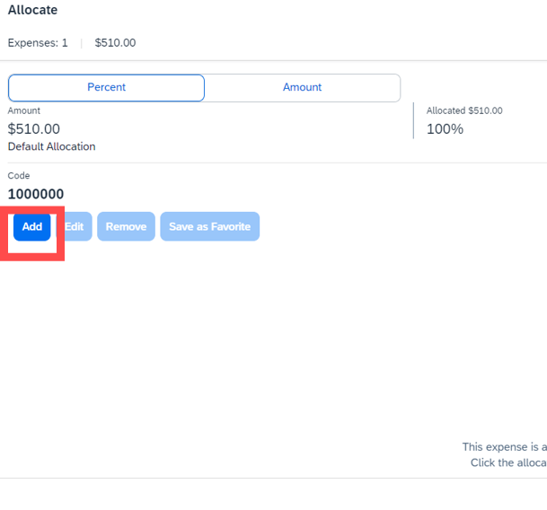14. Allocate the expense by checking the box and selecting "Allocate" above.