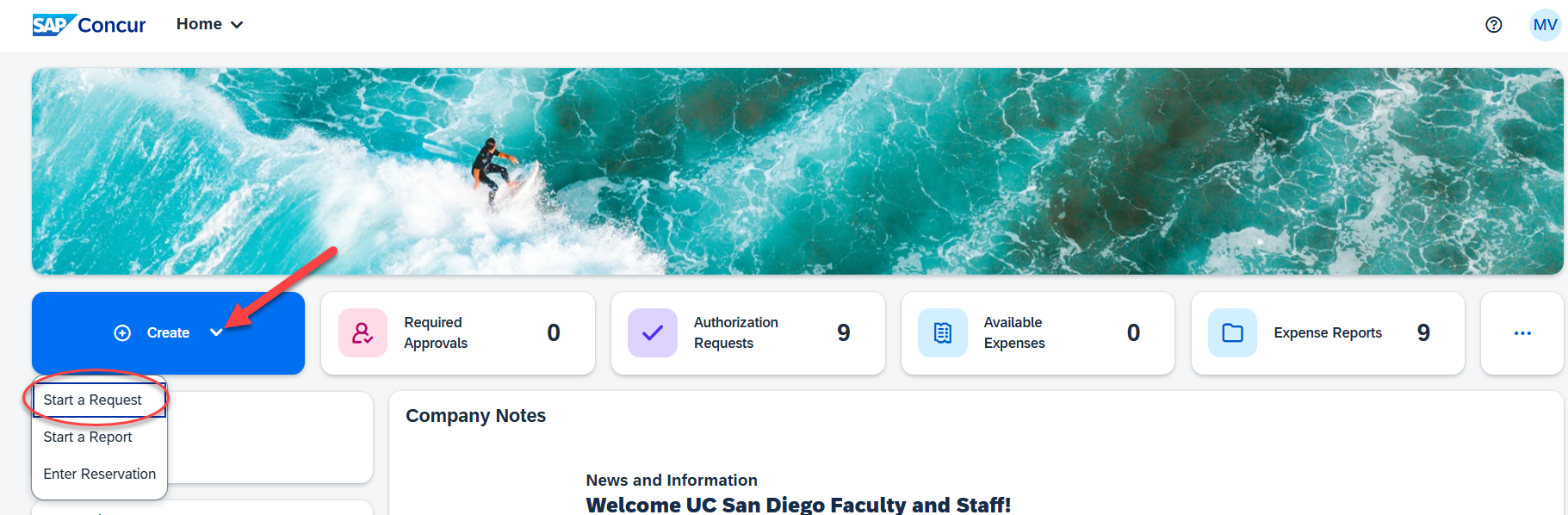 1. Log into Concur.