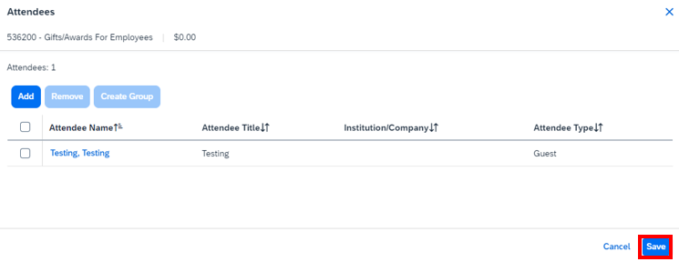 12. Repeat Steps #10-11. When completed adding Attendees, click Save.