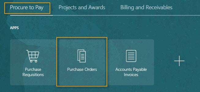 4. On the Oracle Home Page, select Procure to Pay, then select the Purchase Orders module.