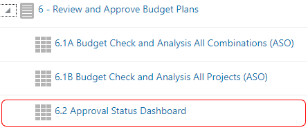 2. Navigate to Task List 6 Review and Approve Budget Plans. Expand the triangle to display Task 6.2 Approval Status Dashboard, and click to load the form.