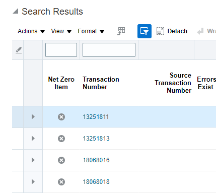 NOTE: Add the Net Zero Item column from the View drop down to identify previously adjusted transactions at a glance: an X under Net Zero Item means it has not been adjusted and is available to transfer; a check mark under Net Zero Item means it has been previously adjusted and can NOT be transferred. See KB0033337 for detailed steps on adding columns to your view.