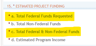 - For #15A and 15C, enter the total funding request from the budget workbook